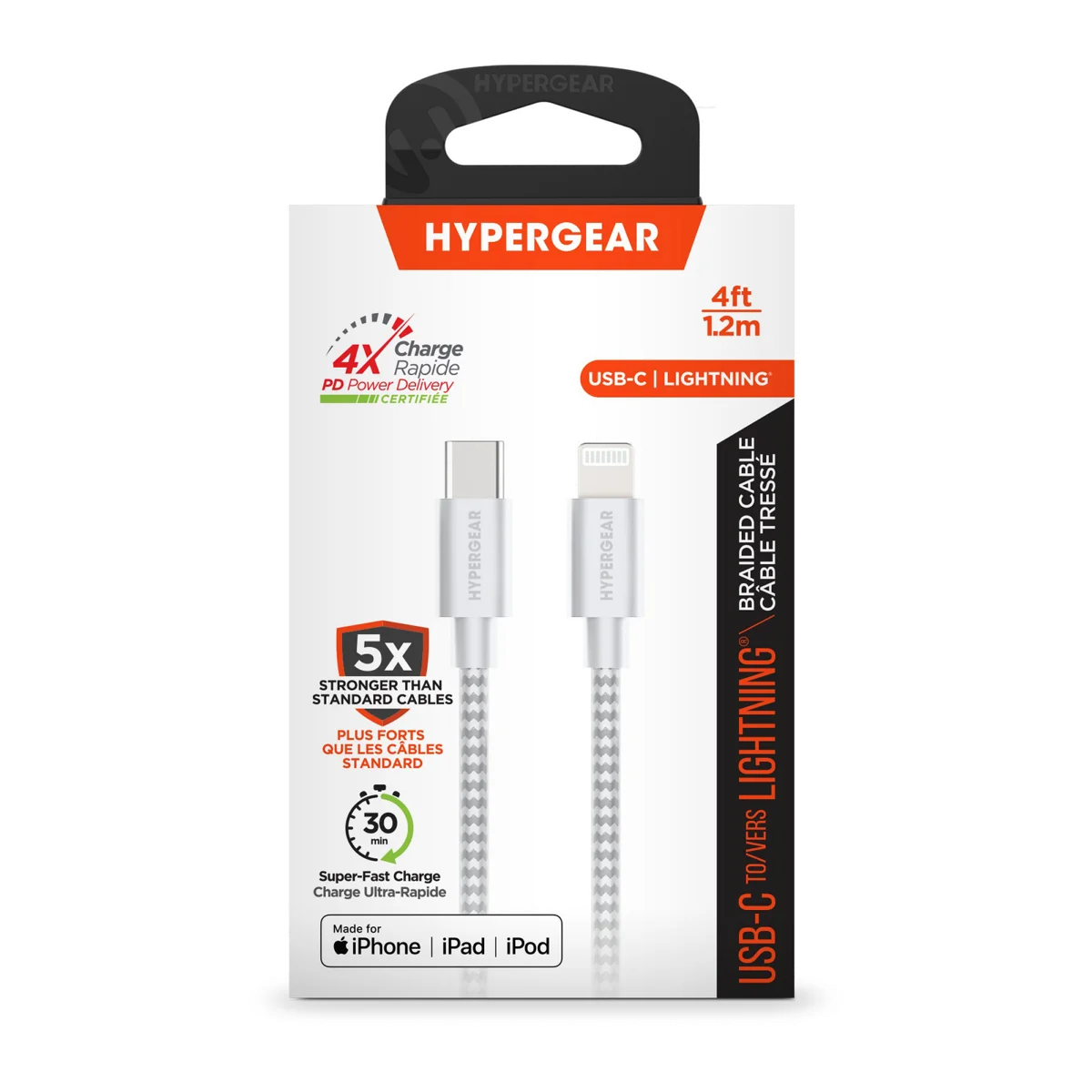 HyperGear 4 ft. (120cm) USB-C to Lightning Braided Charge and Sync Cable